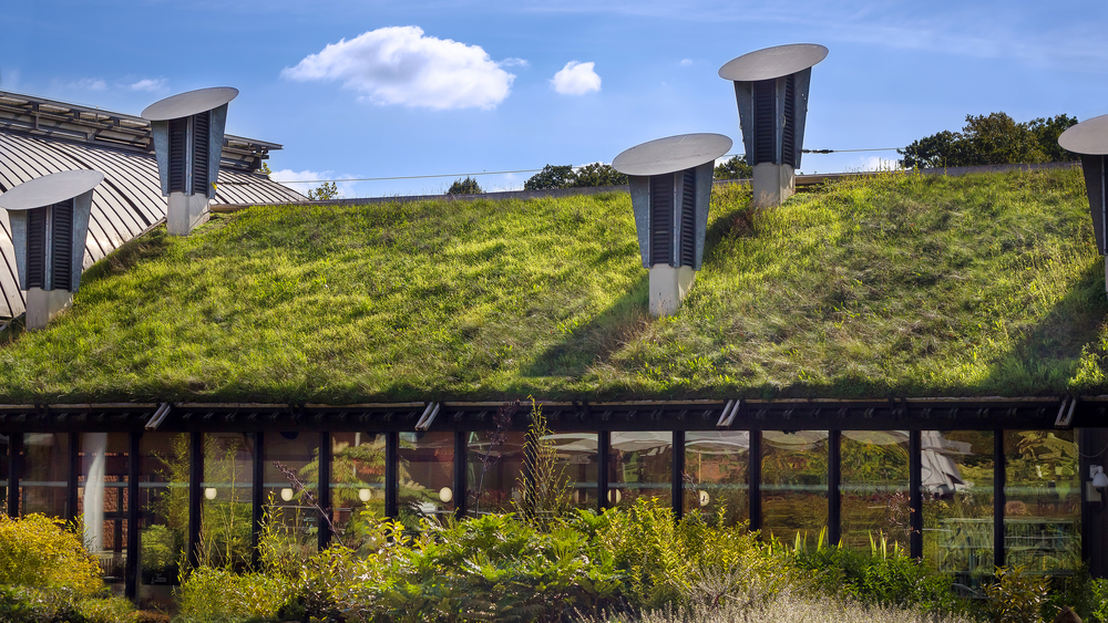Green,’living’,Roof,On,Public,City,Library.,Eco,Friendly,Building